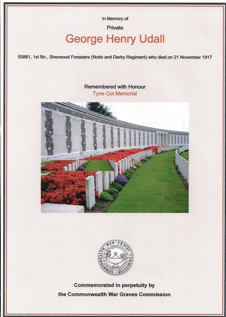 George Henry Udall was born 1886 in Mansfield, Notts. He is possibly the son of George and Lizzie Udall of Meadow Square, Mansfield. George was an employee of ‘The Jacksdale Co-Operative Baking Society Ltd’, situated in Dixie Street, Jacksdale (established in 1902), but now derelict. He is mentioned in a report on the Bakery written in August 1933 which states:-